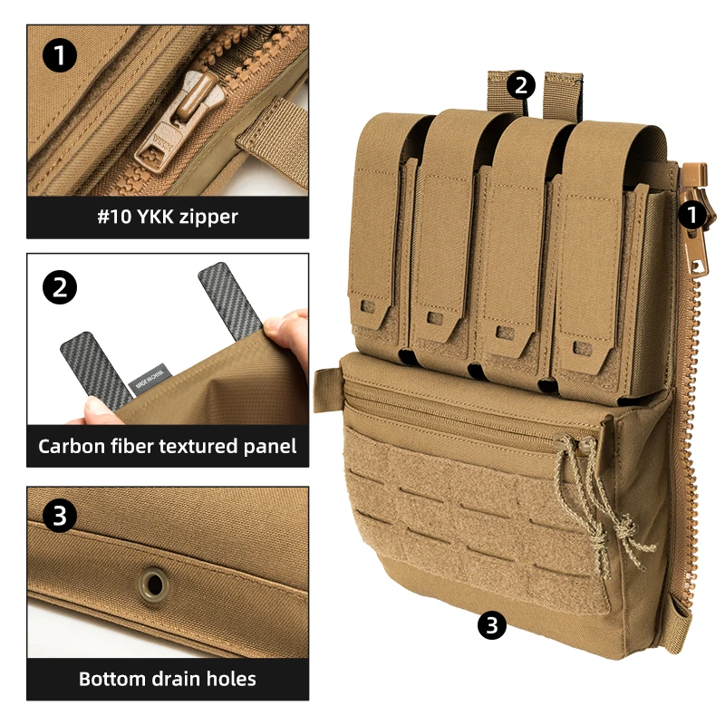 IDOGEAR sac à dos tactique fermeture éclair sur panneau arrière Support Quad Mag YKK fermeture éclair sac de Support polyvalent pour gilet de chasse 35141