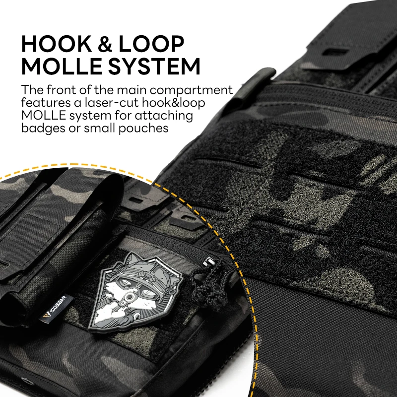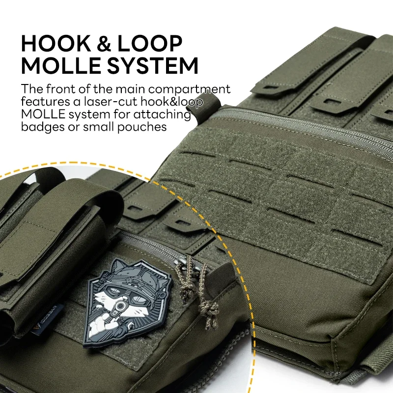 • Peut être installé sur des supports compatibles MOLLE avec notre kit de fermeture éclair MOLLE