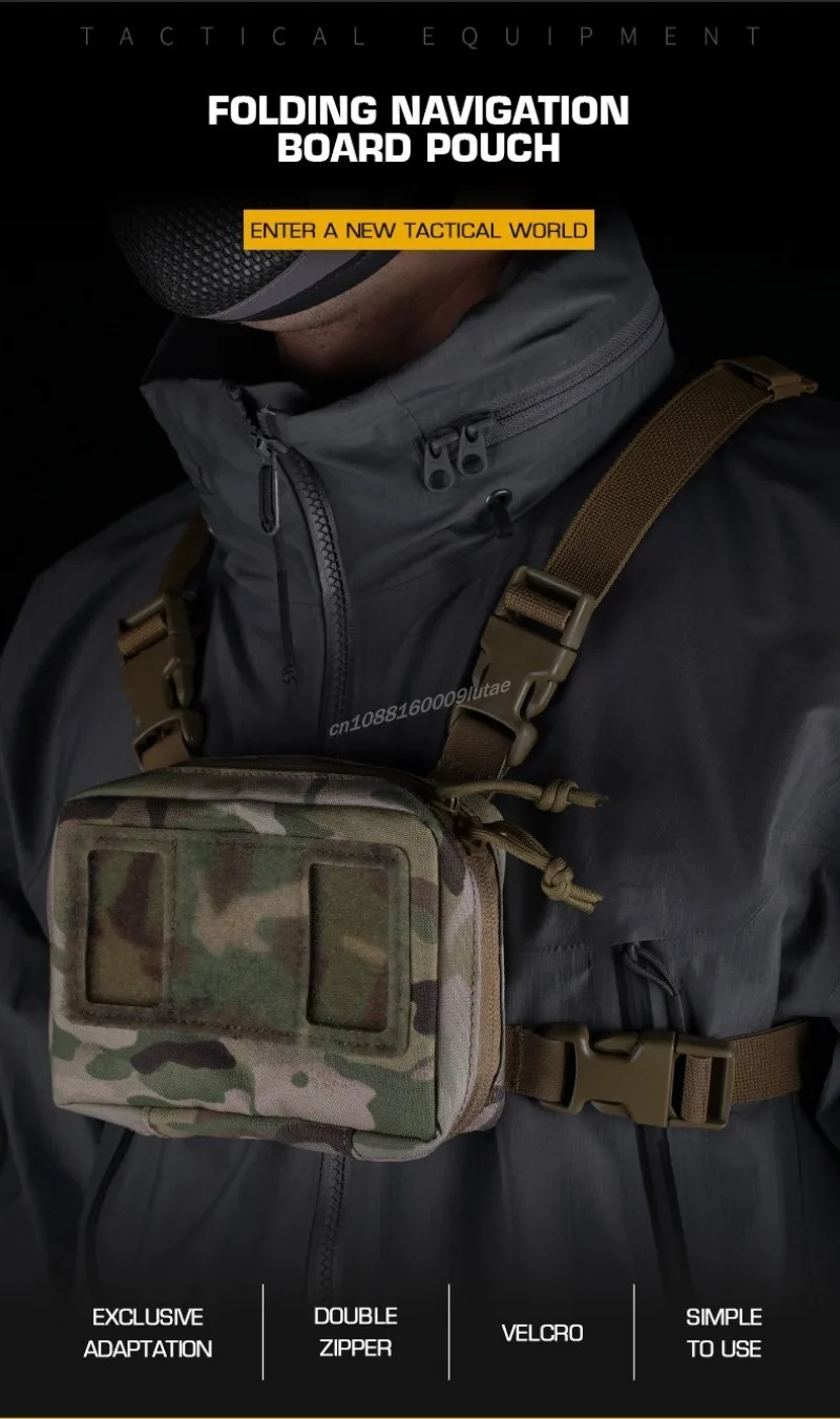 Support de téléphone tactique MOLLE pliable conçu pour les opérateurs tactiques, chasseurs et personnel militaire. Pochette multifonction pour navigation GPS, boussole et smartphone avec protection contre les éléments.